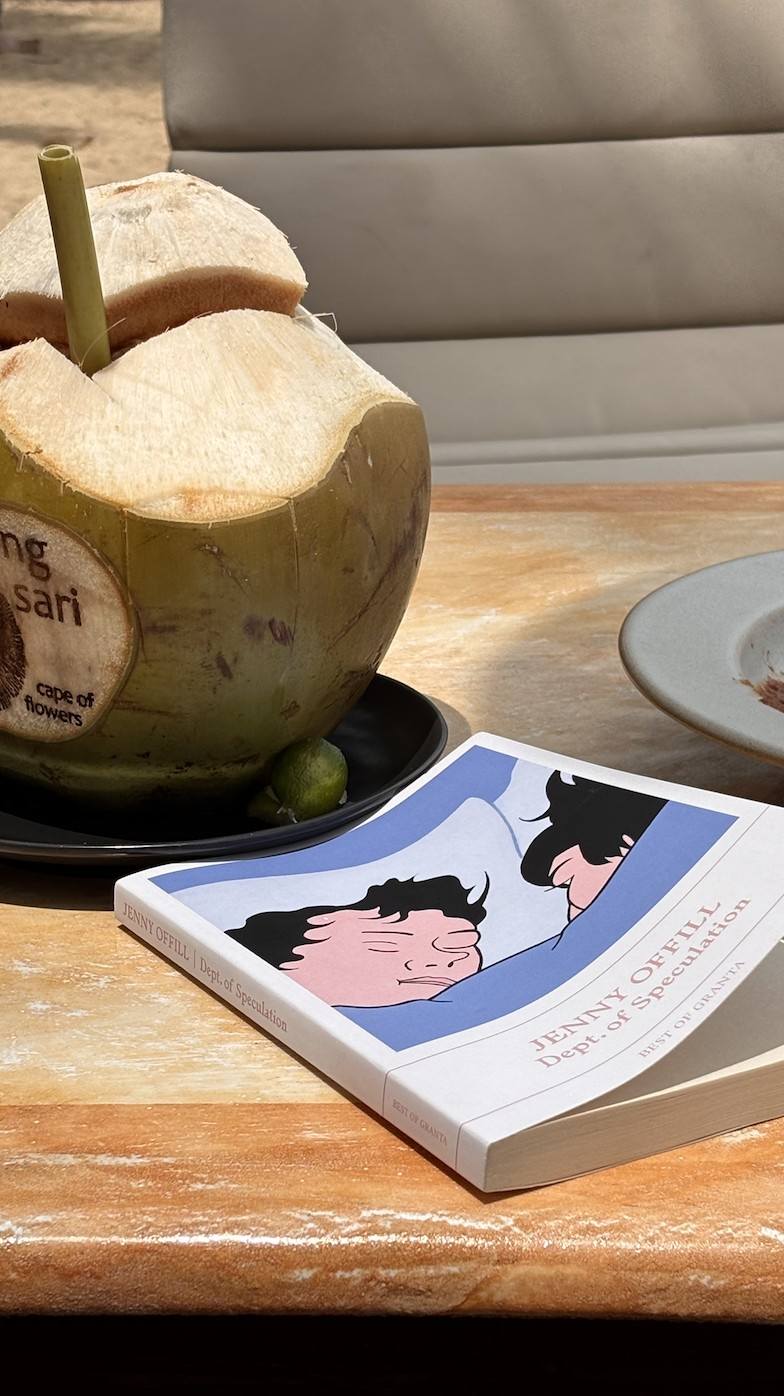 towards the end of all this, i found myself back in a familiar rhythm: sitting in the sun, coconut on the table, book in hand.